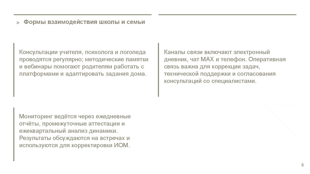 Формы взаимодействия школы и семьиКонсультации учителя, психолога и логопеда