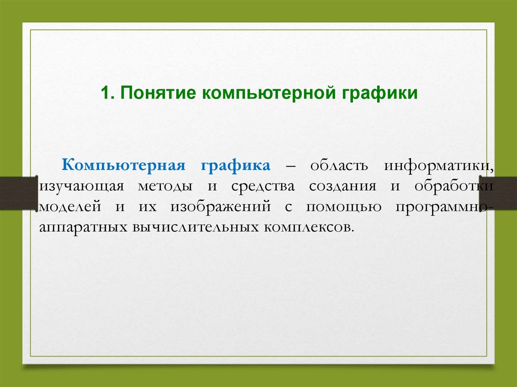 1. Понятие компьютерной графикиКомпьютерная графика – область информатики,