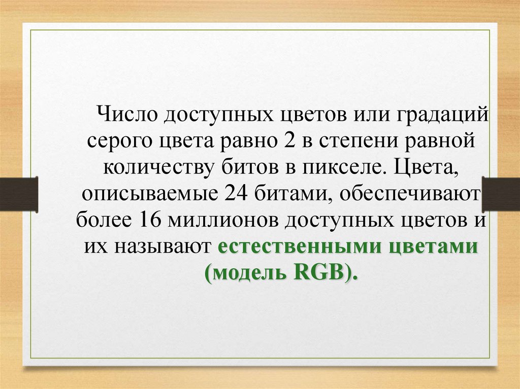 Число доступных цветов или градацийсерого цвета равно 2 в степени равной