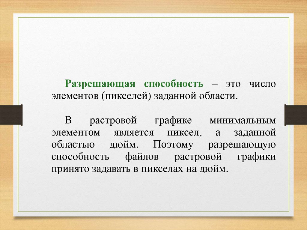 Разрешающая способность – это числоэлементов (пикселей) заданной области.