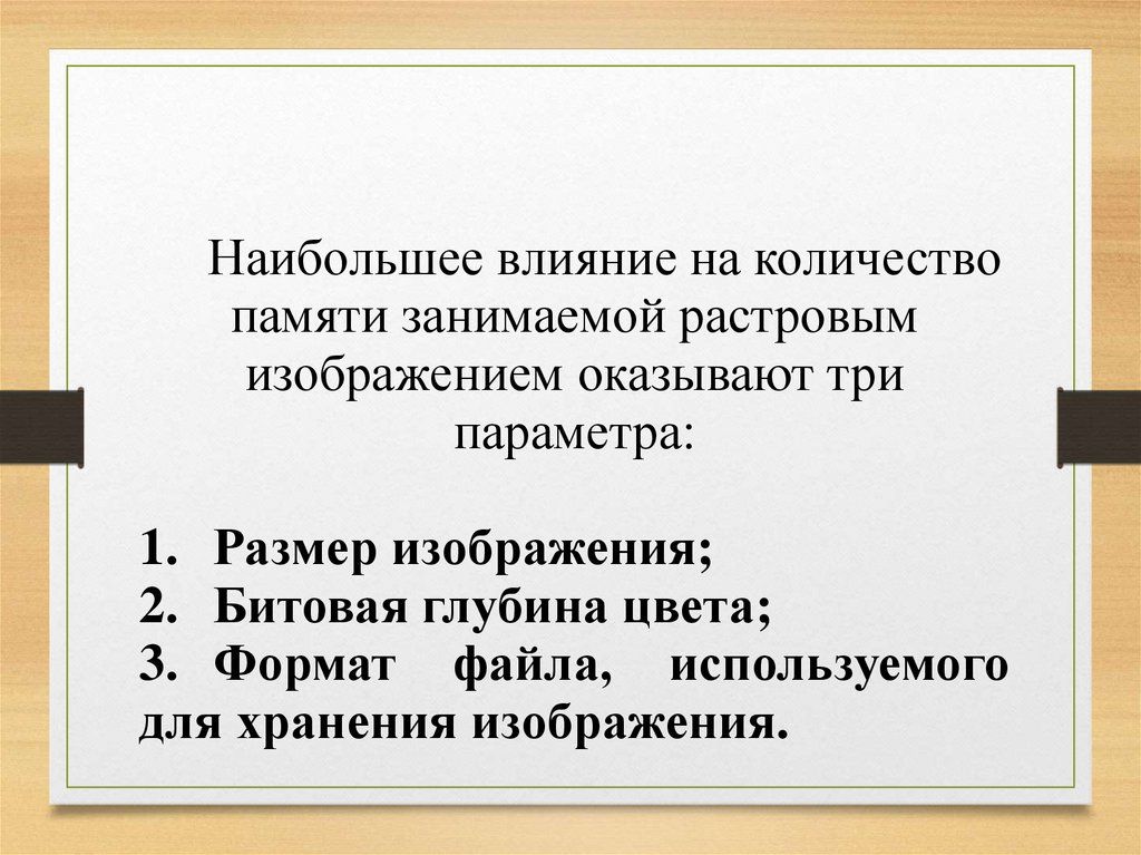 Наибольшее влияние на количествопамяти занимаемой растровым