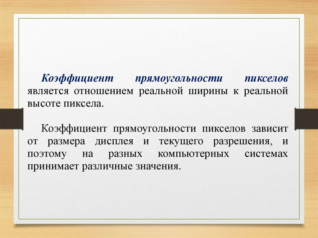 Коэффициент прямоугольности пикселов зависит