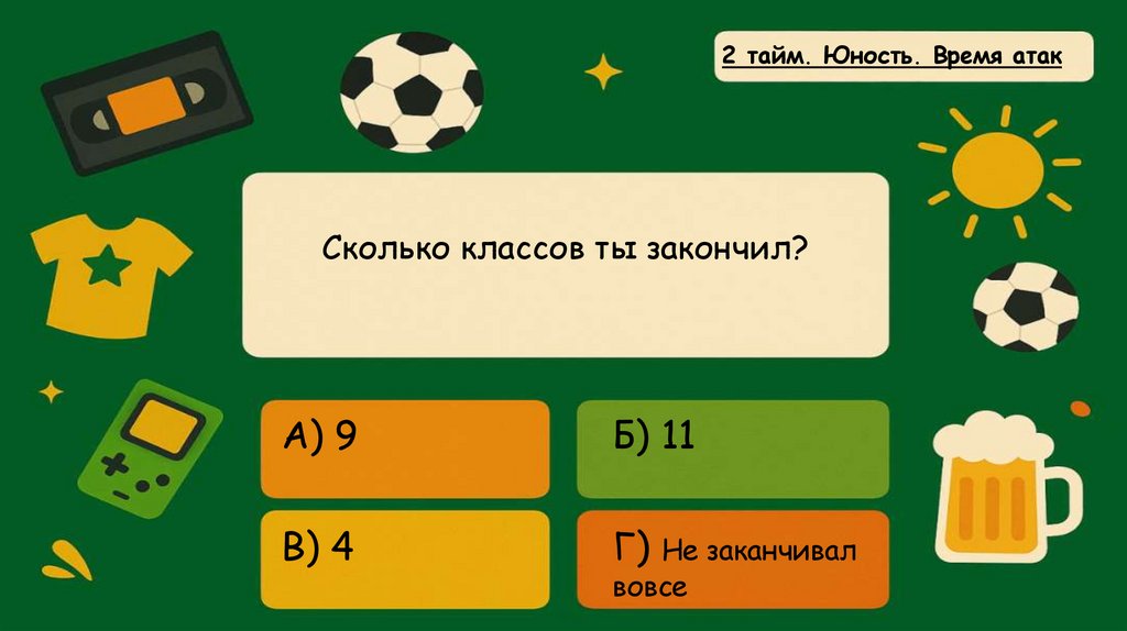 2 тайм. Юность. Время атакСколько классов ты закончил?