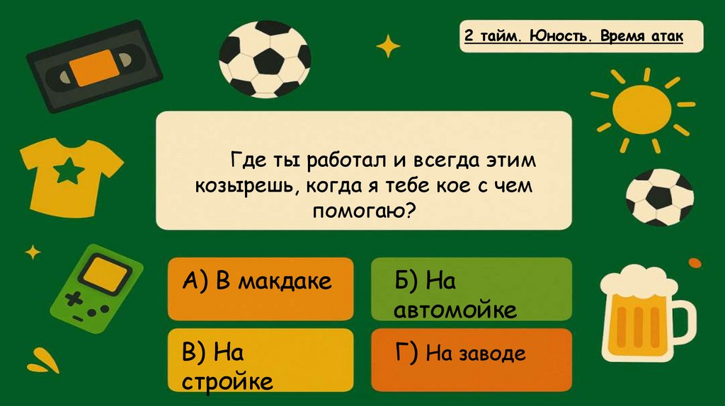 2 тайм. Юность. Время атакГде ты работал и всегда этим