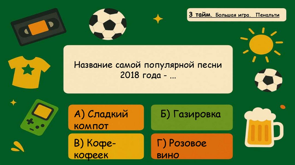 3 тайм. Большая игра. ПенальтиНазвание самой популярной песни