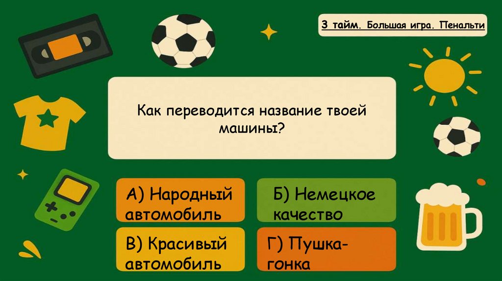 3 тайм. Большая игра. ПенальтиКак переводится название твоей