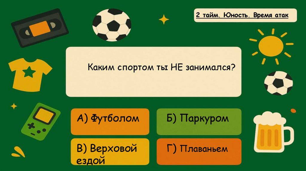 2 тайм. Юность. Время атакКаким спортом ты НЕ занимался?