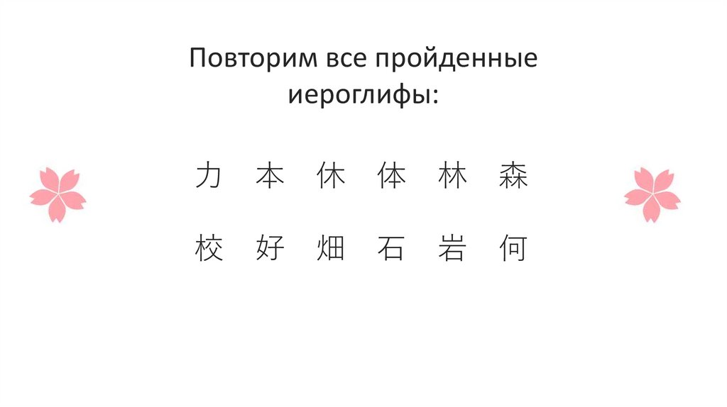 Повторим все пройденныеиероглифы: