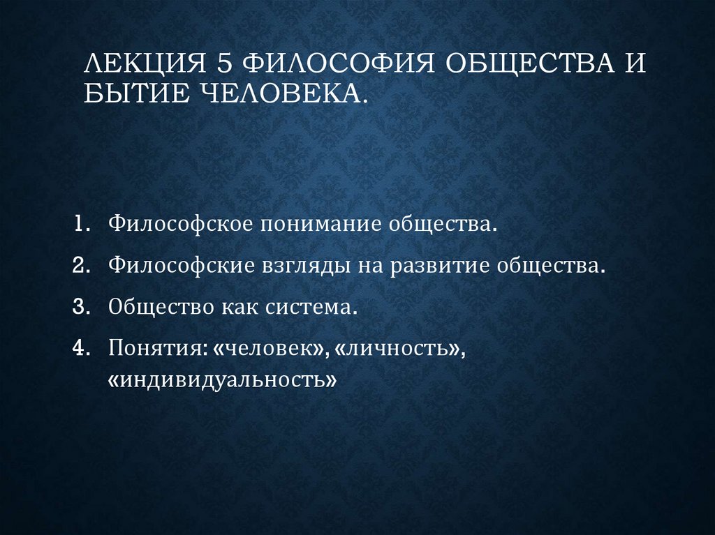 ЛЕКЦИЯ 5 ФИЛОСОФИЯ ОБЩЕСТВА ИБЫТИЕ ЧЕЛОВЕКА.