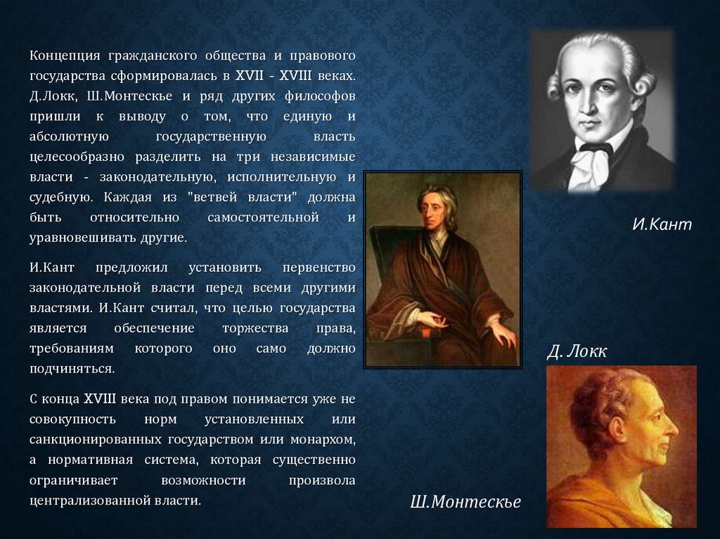 Концепция гражданского общества и правовогогосударства сформировалась в XVII - XVIII веках.