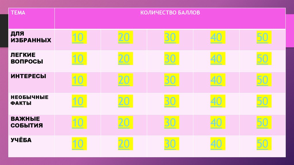 ТЕМАКОЛИЧЕСТВО БАЛЛОВ