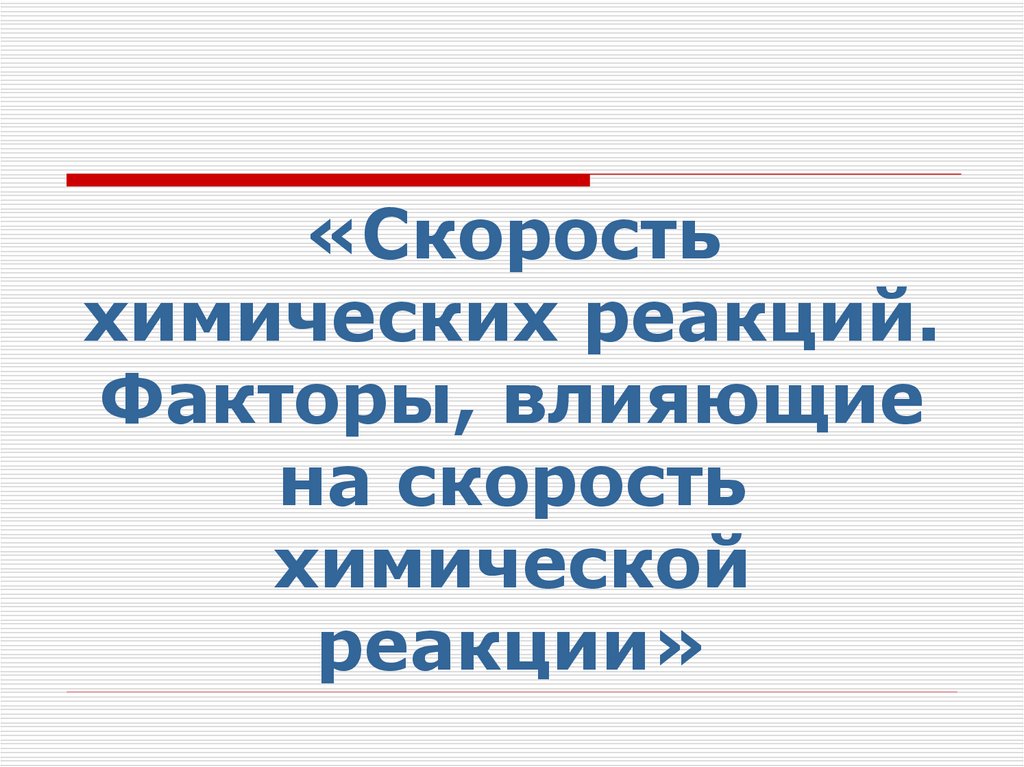 1. «Скорость химических реакций. Факторы, влияющие на скорость химической реакции»