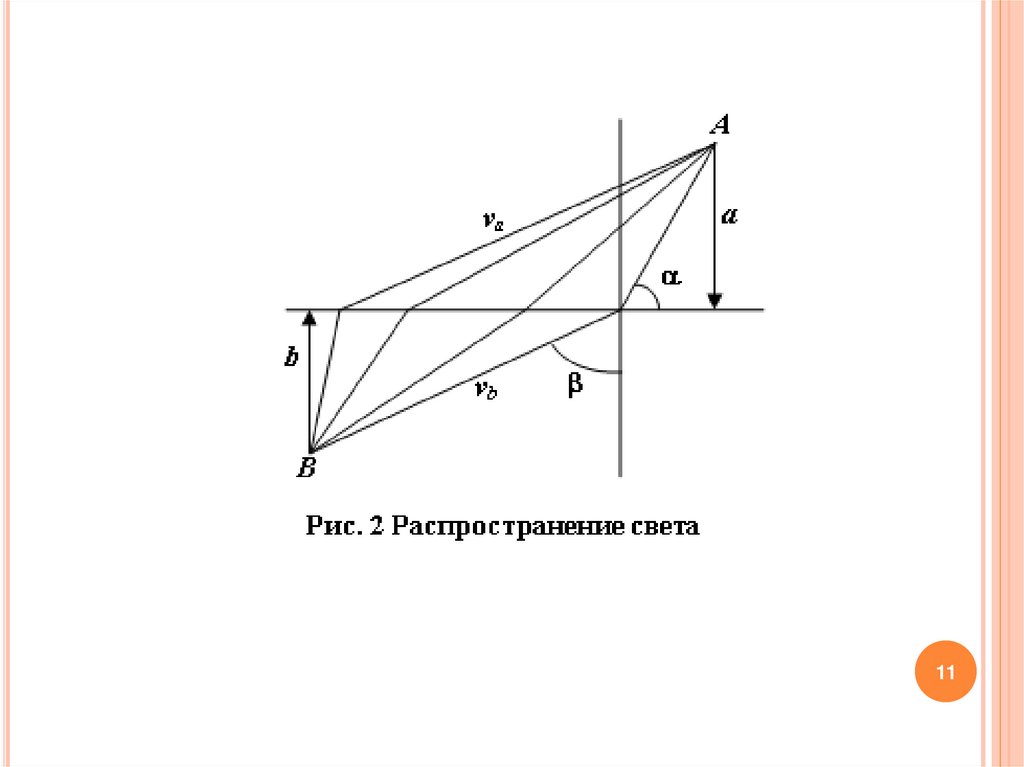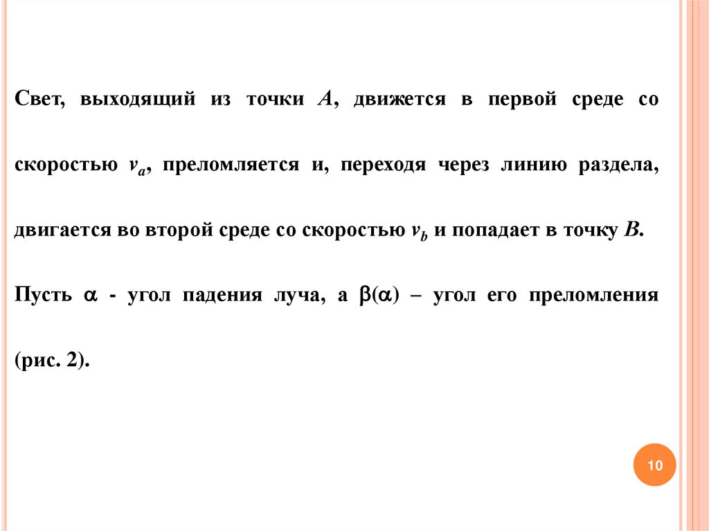 Свет, выходящий из точки А, движется в первой среде соскоростью va, преломляется и, переходя через линию раздела,