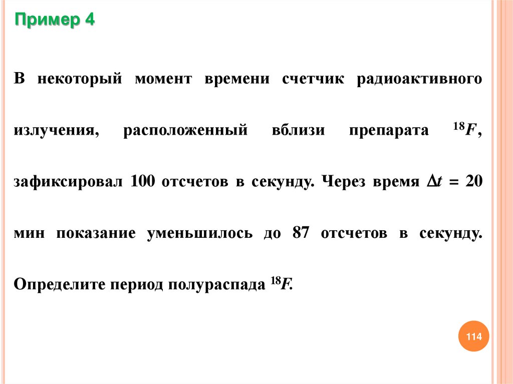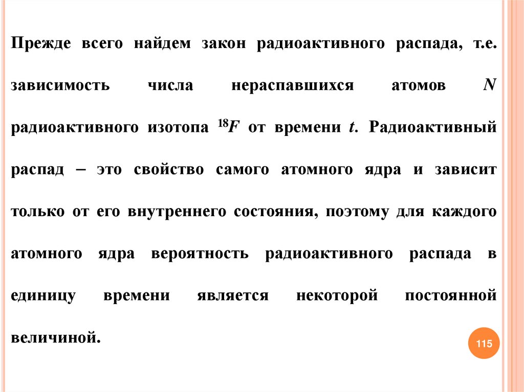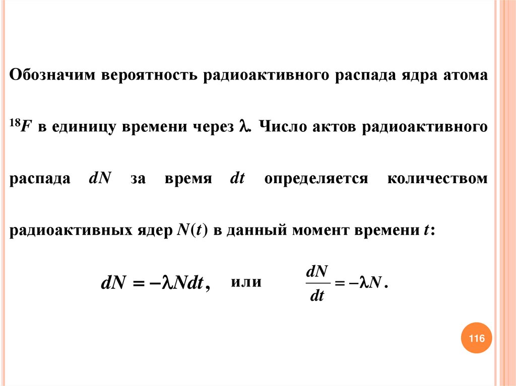 Обозначим вероятность радиоактивного распада ядра атома18F в единицу времени через . Число актов радиоактивного