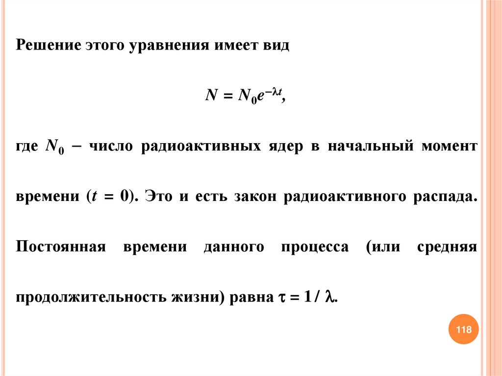 времени (t = 0). Это и есть закон радиоактивного распада.