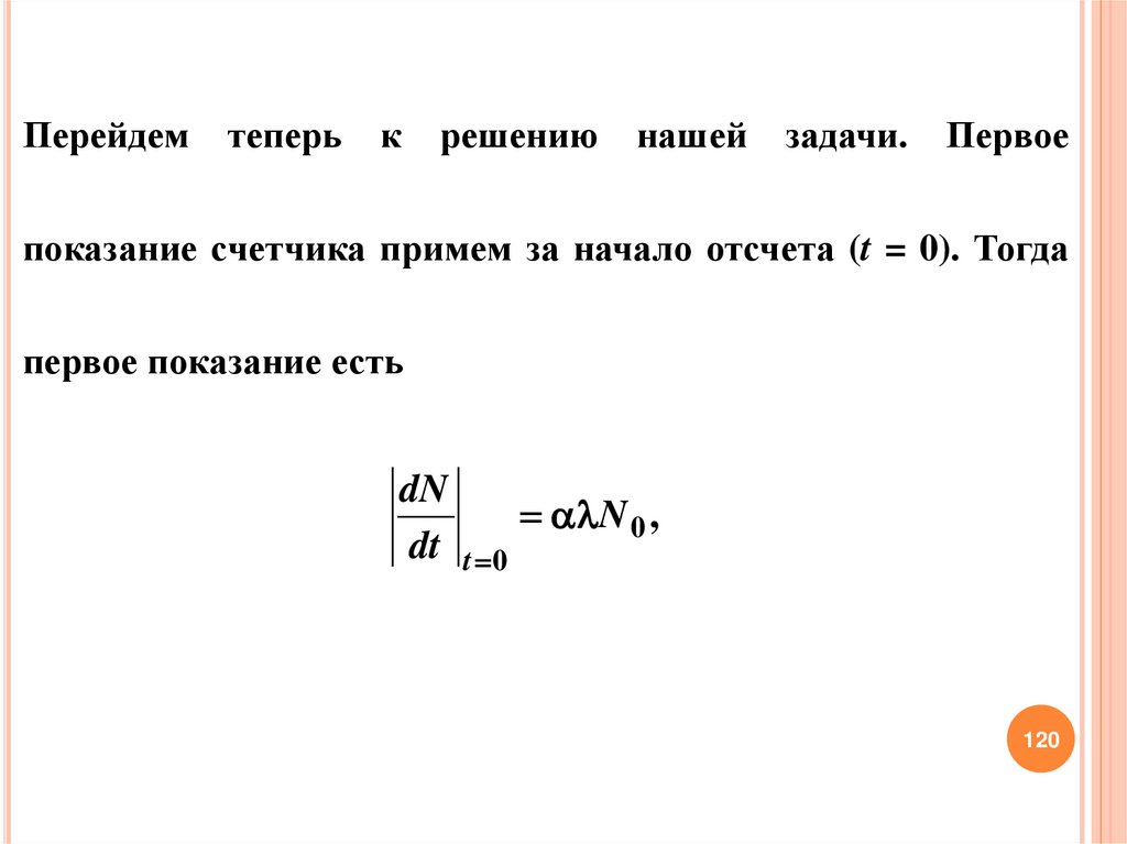 показание счетчика примем за начало отсчета (t = 0). Тогда