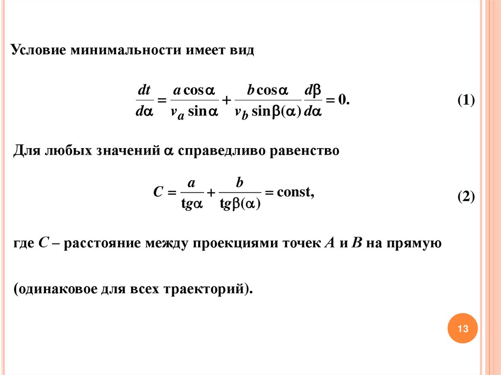Из условия минимума получаем математическую трактовку