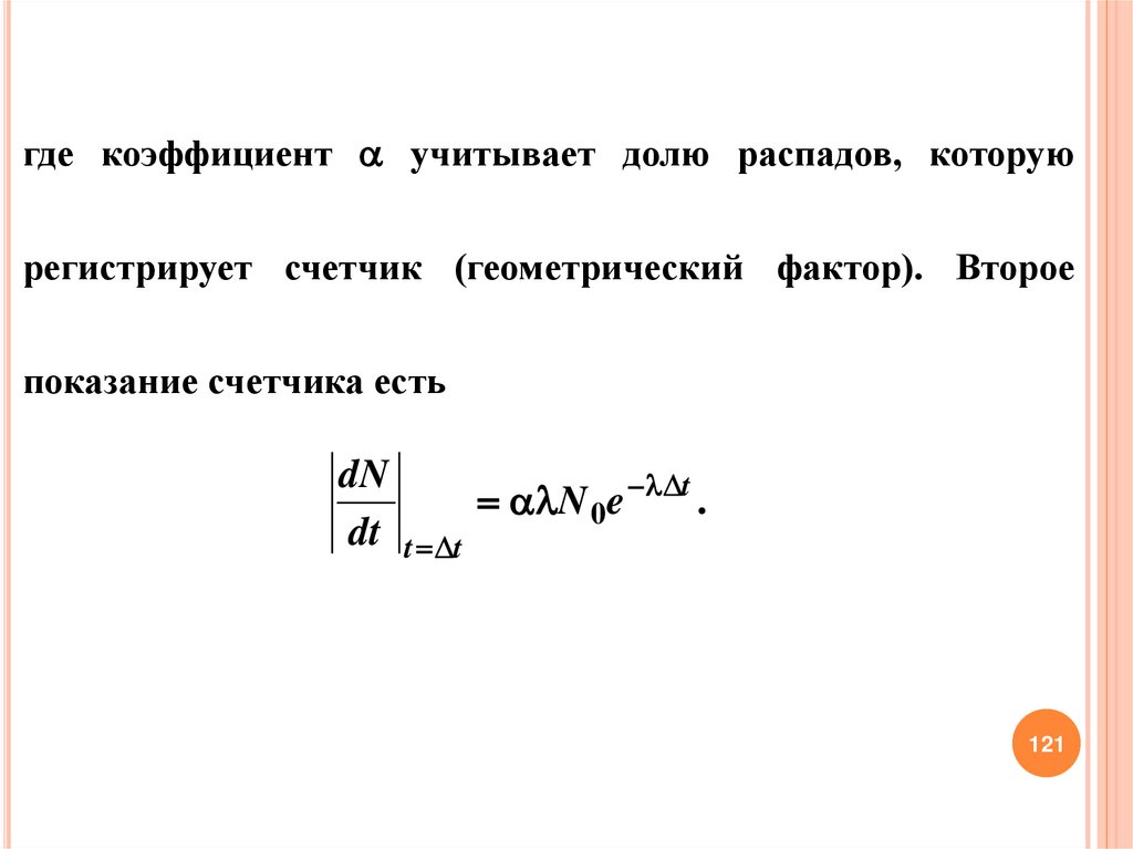 где коэффициент учитывает долю распадов, которуюрегистрирует счетчик (геометрический фактор). Второе