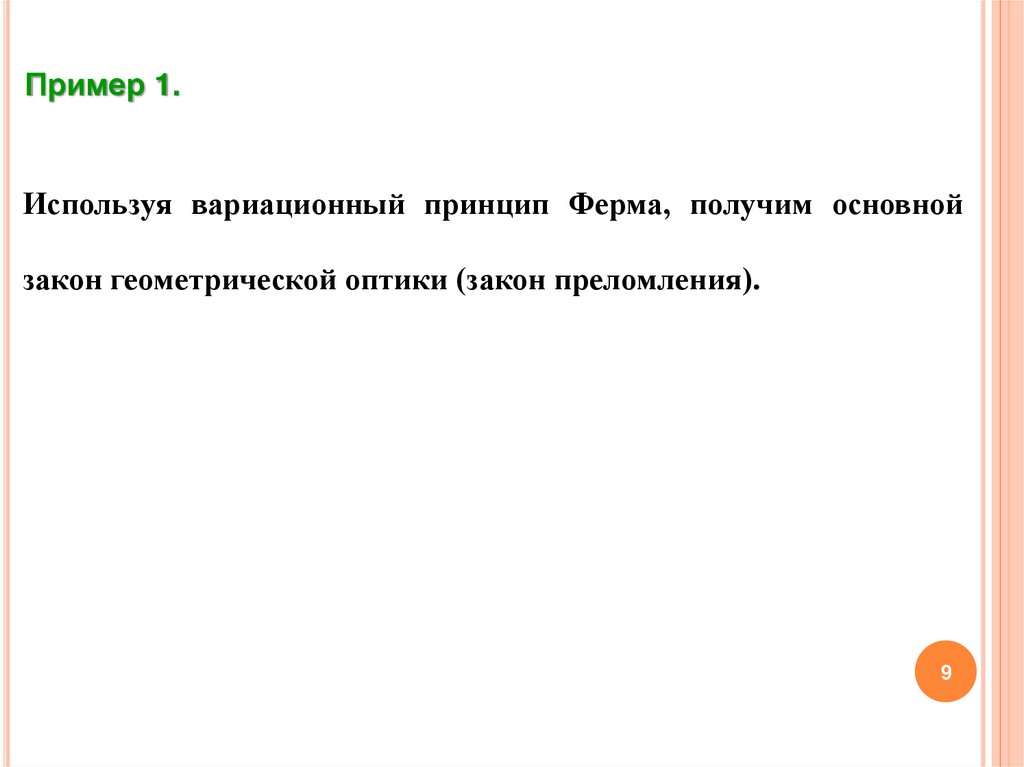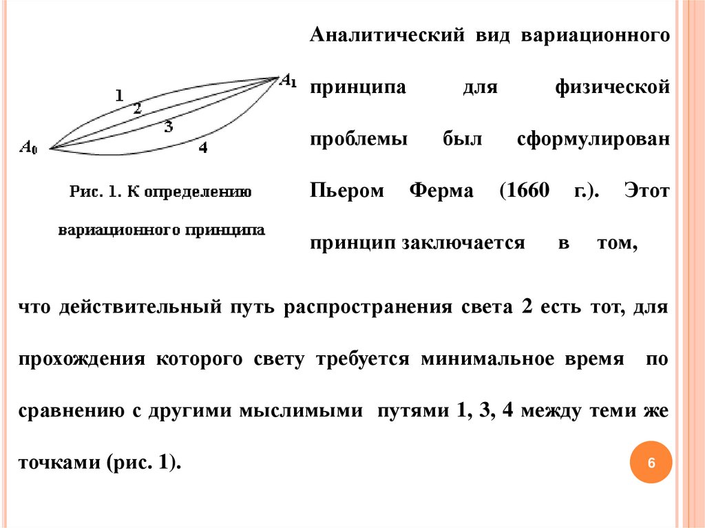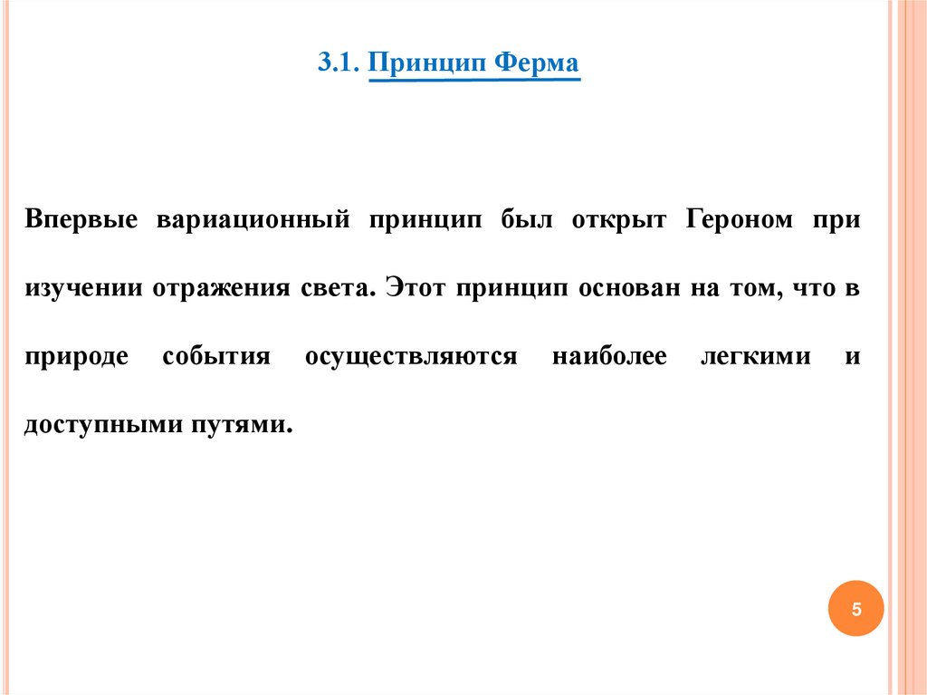 3.1. Принцип ФермаВпервые вариационный принцип был открыт Героном при