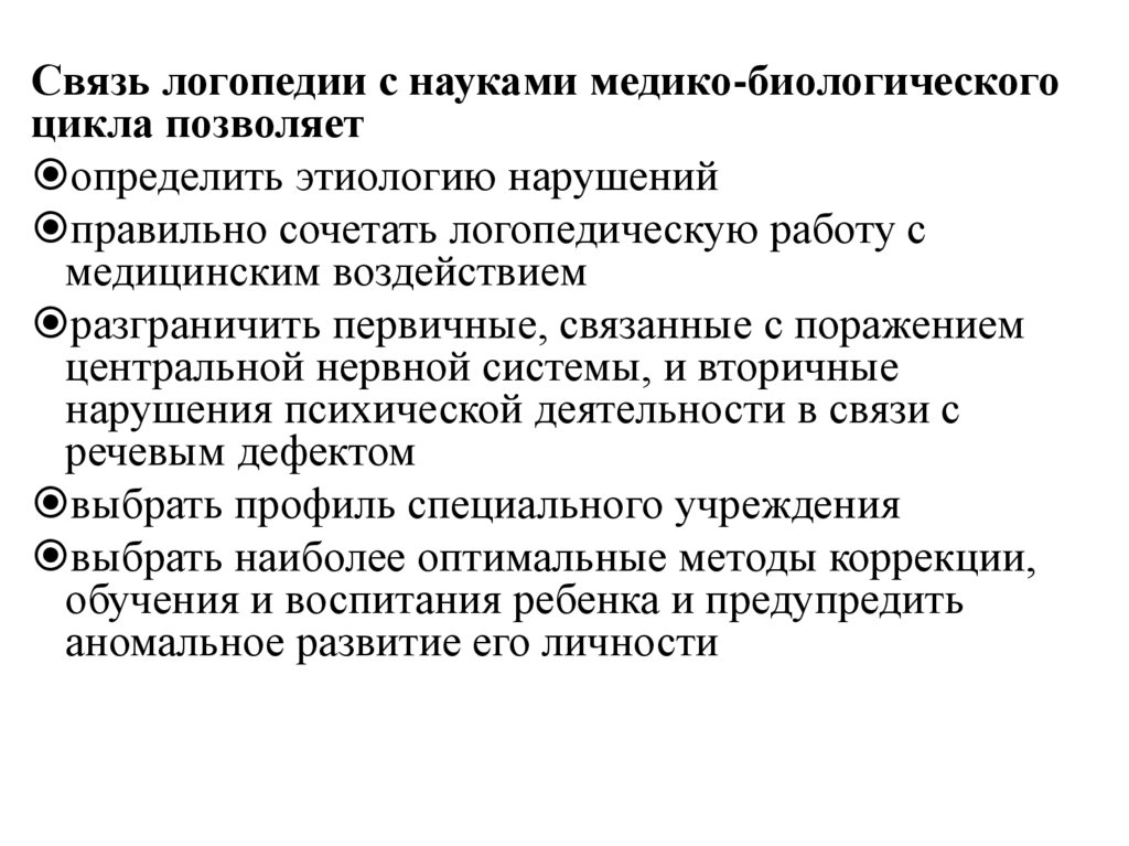 Связь логопедии с науками медико-биологическогоцикла позволяет