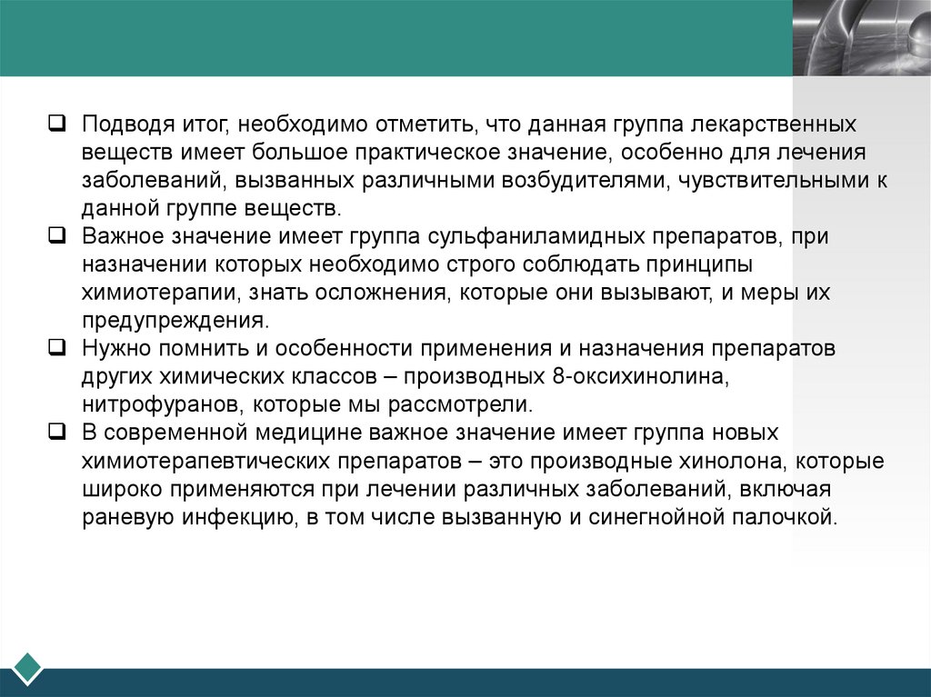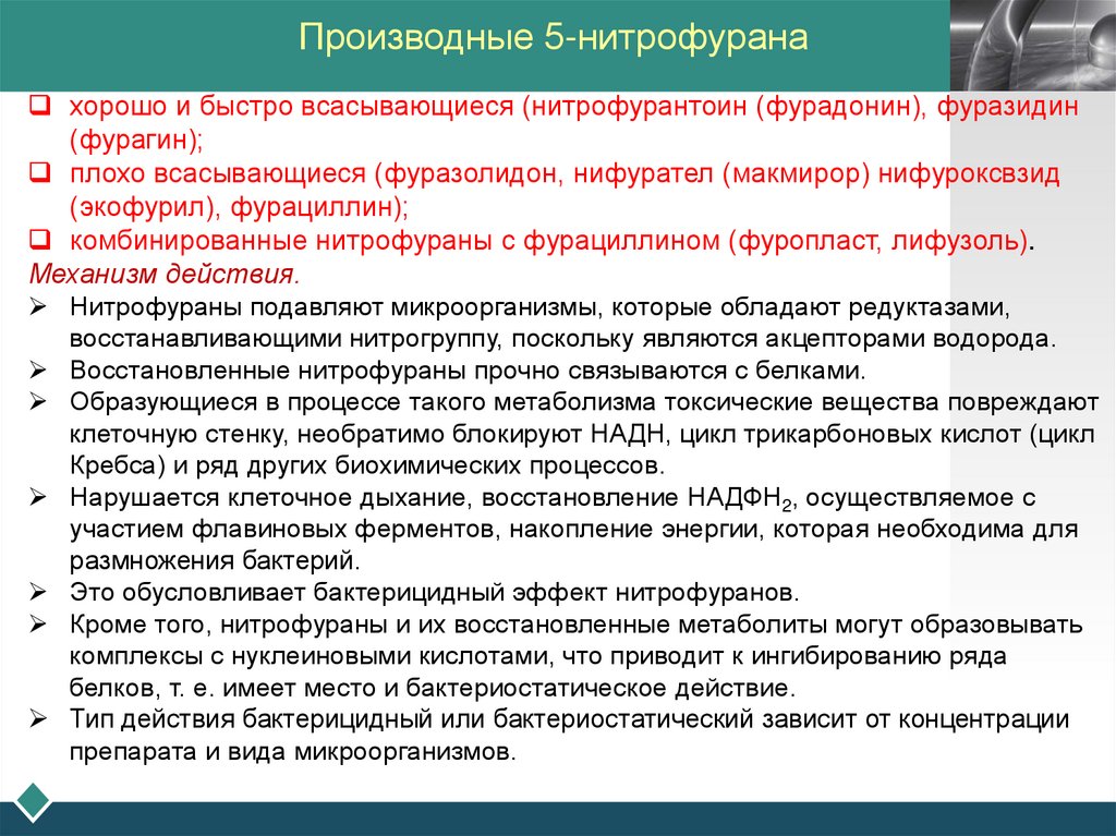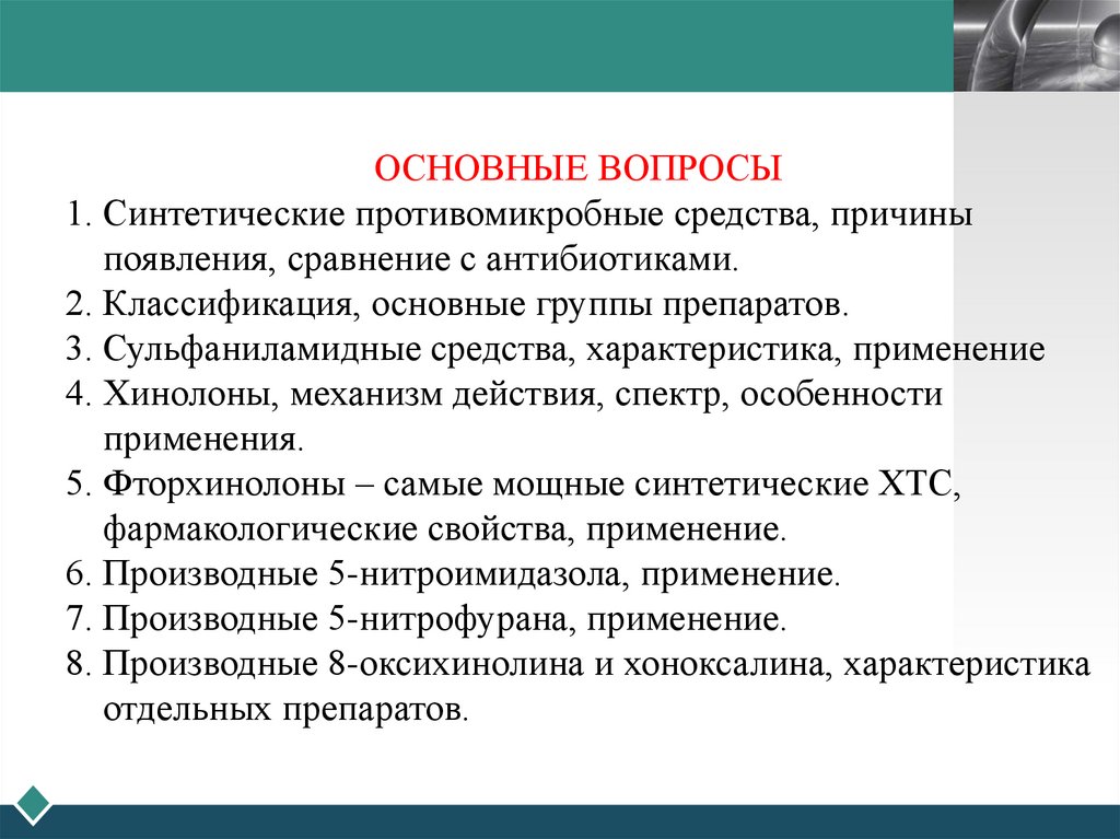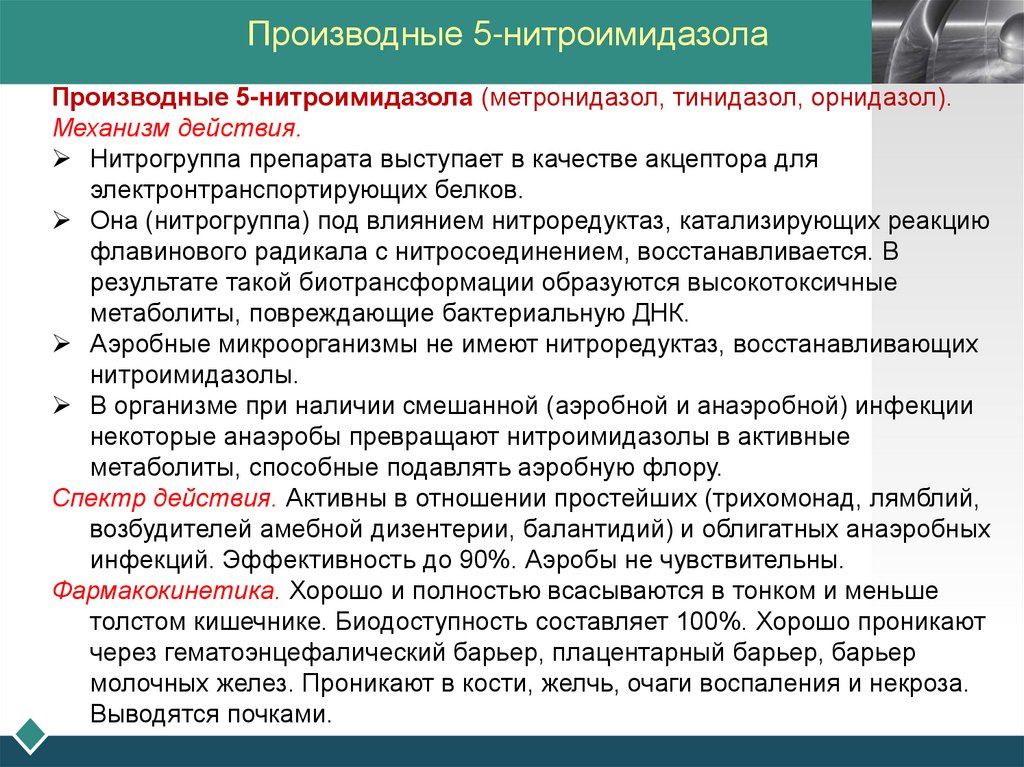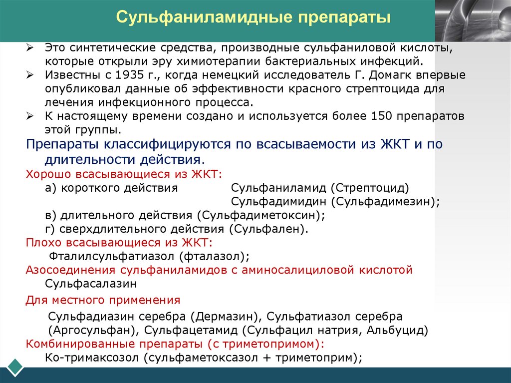 сульфаниламидные средства, производные нитрофурана, нитроимидазола, 8оксихинолины, хиноксалины.