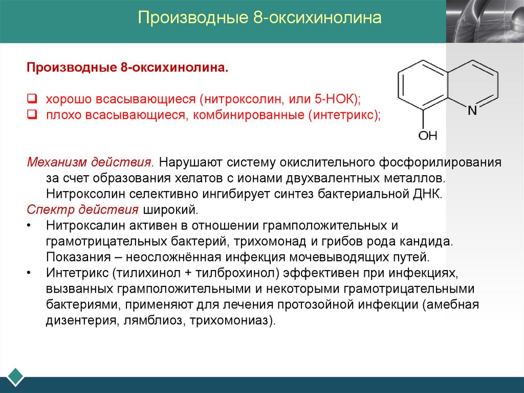8. Производные 8-оксихинолина и хоноксалина, характеристика