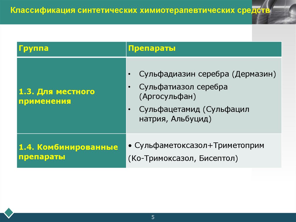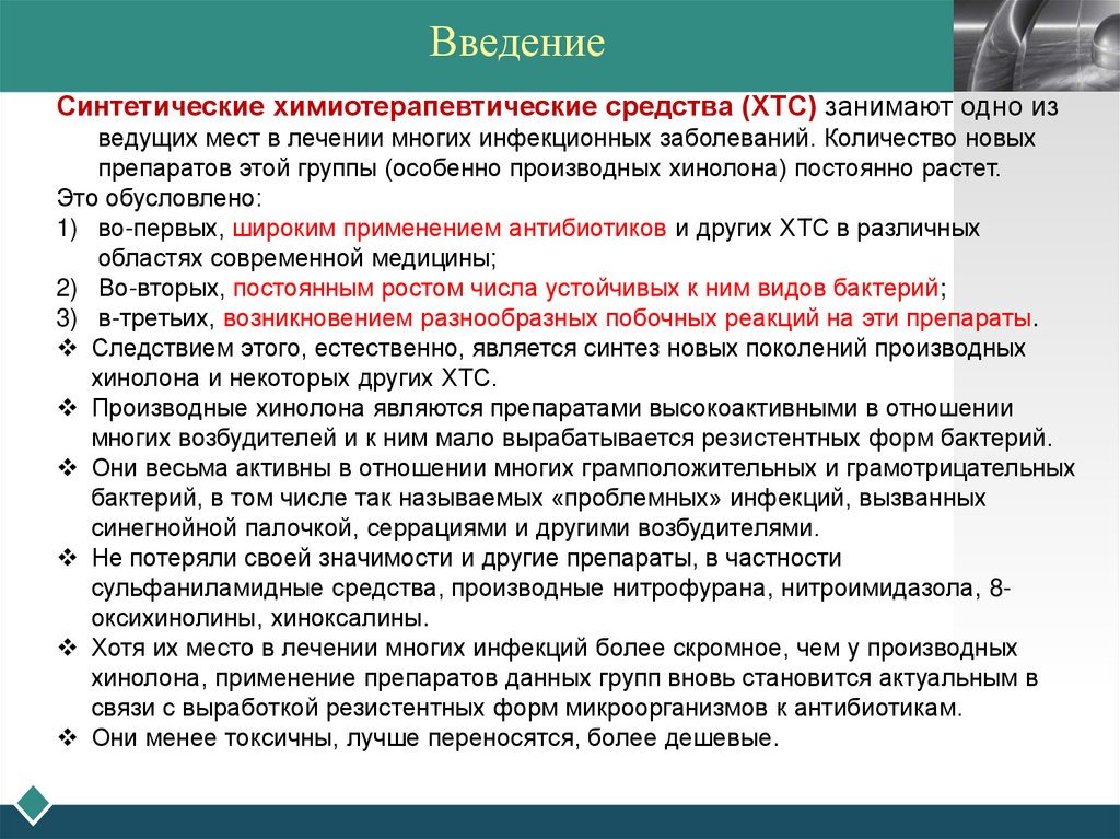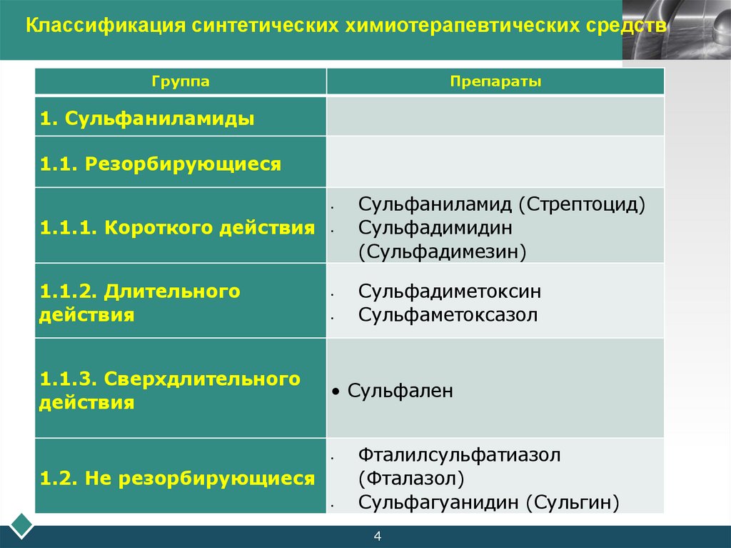 Синтетические химиотерапевтические средства (ХТС) занимают одно из