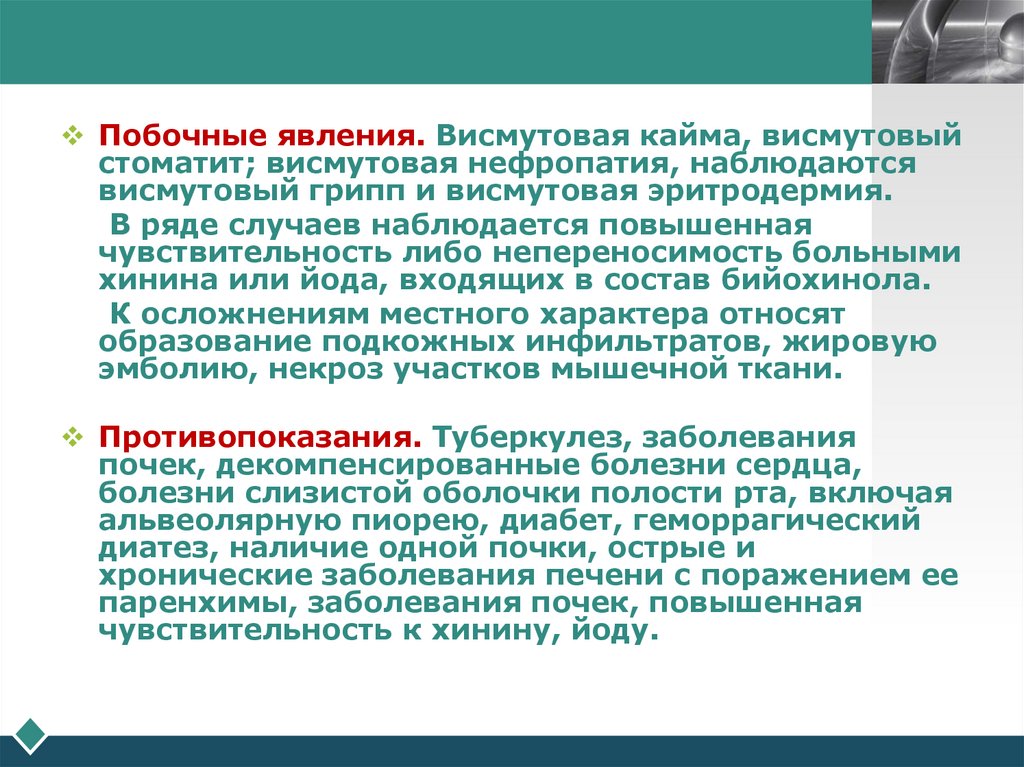 LOGOПобочные явления. Висмутовая кайма, висмутовый