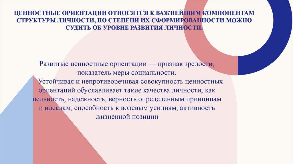 устойчивых мотивов, ориентирующих деятельность