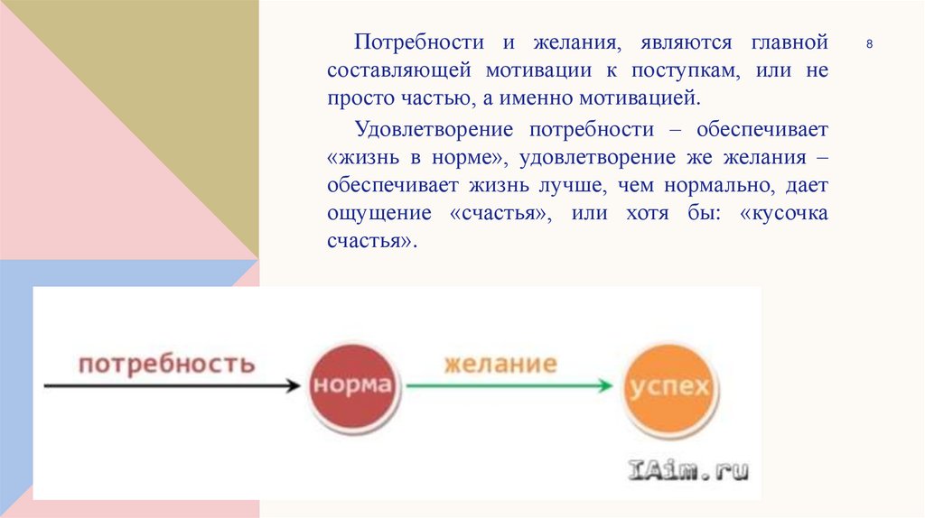 Потребности и желания, являются главнойсоставляющей мотивации к поступкам, или не