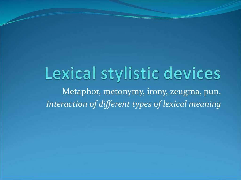 Metaphor, metonymy, irony, zeugma, pun.Interaction of different types of lexical meaning