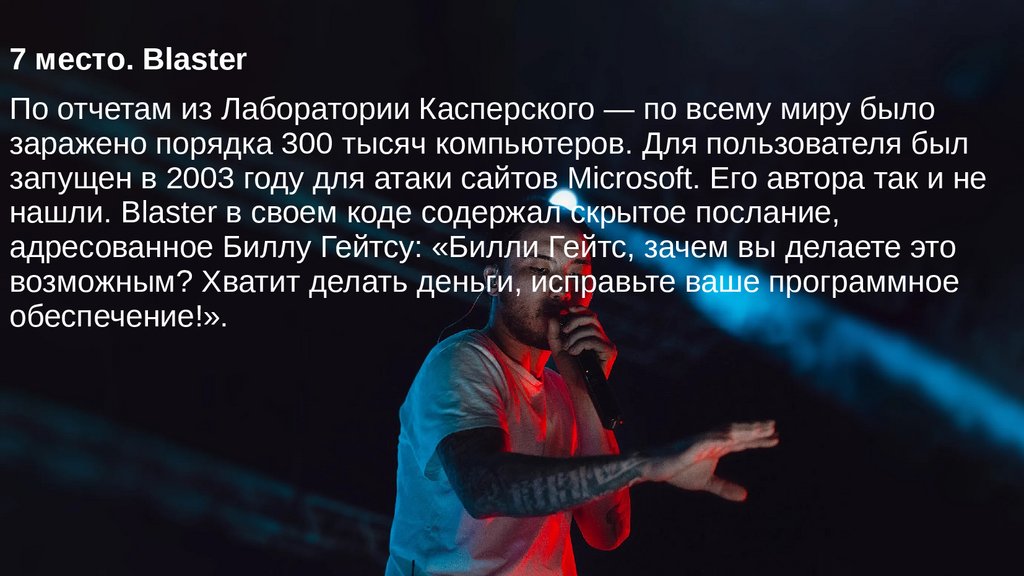 7 место. BlasterПо отчетам из Лаборатории Касперского — по всему миру было