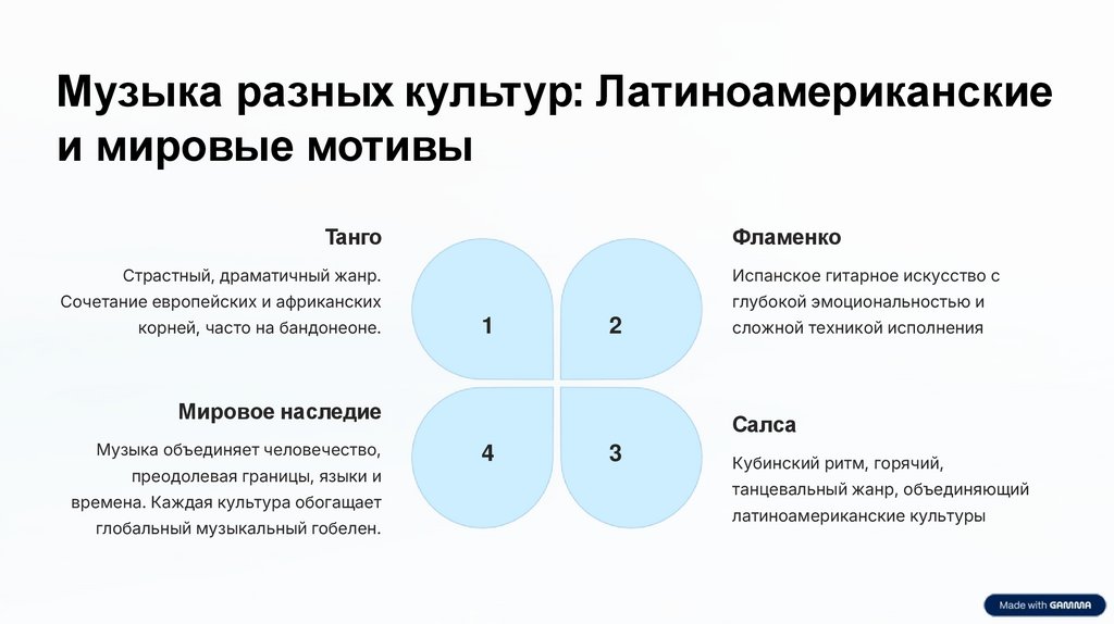 Музыка разных культур: Латиноамериканскиеи мировые мотивы