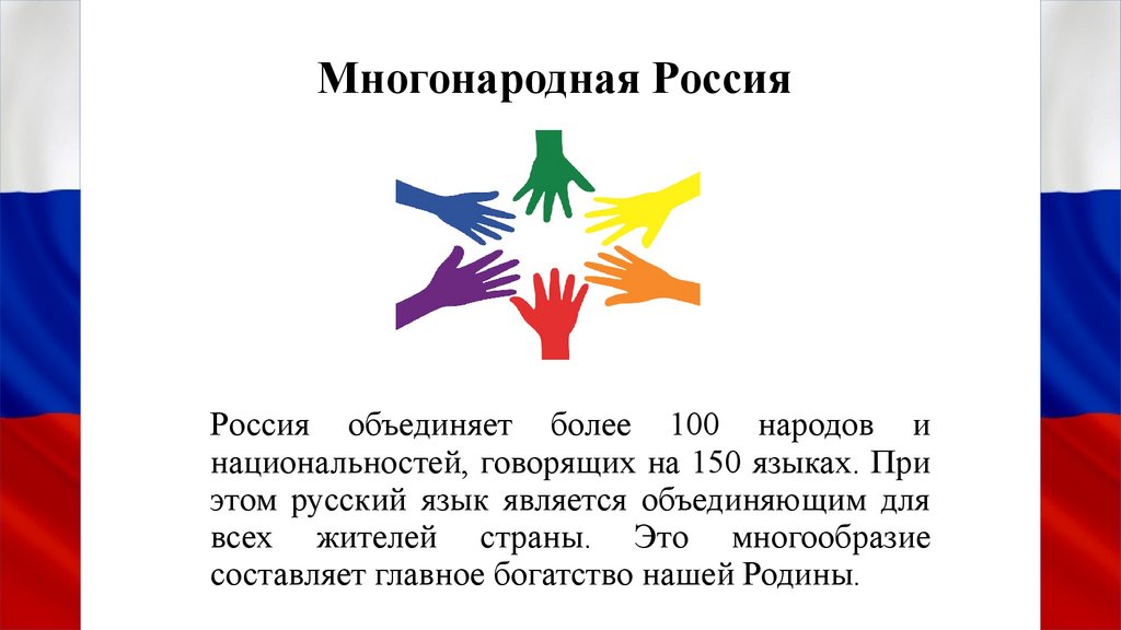 Многонародная РоссияРоссия объединяет более 100 народов и