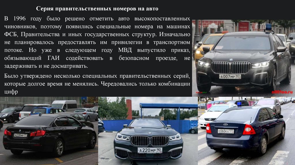 Серия правительственных номеров на автоВ 1996 году было решено отметить авто высокопоставленных