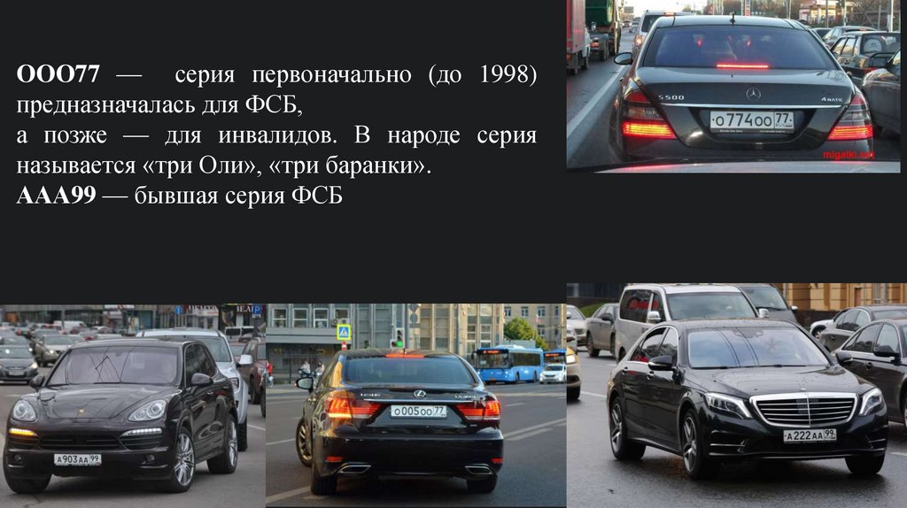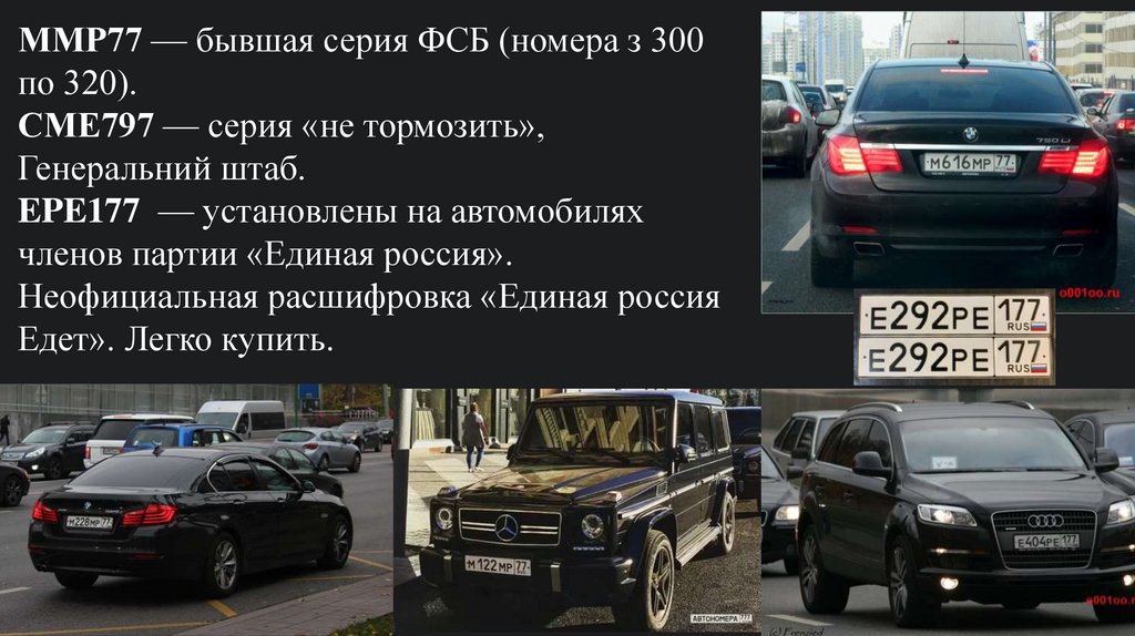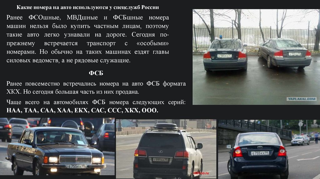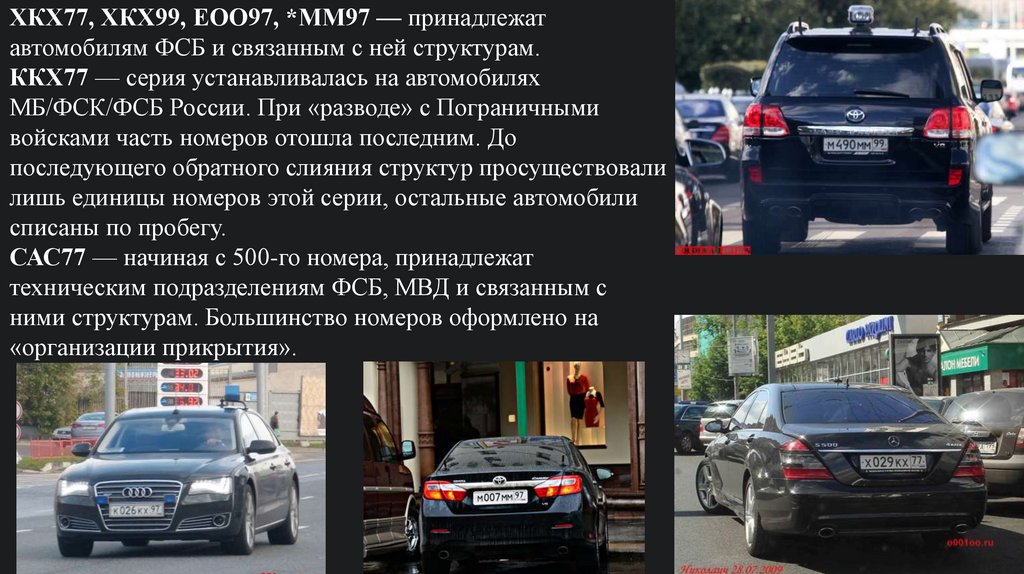 ХКХ77, ХКХ99, ЕОО97, *ММ97 — принадлежатавтомобилям ФСБ и связанным с ней структурам.