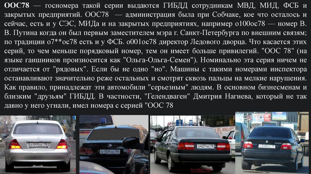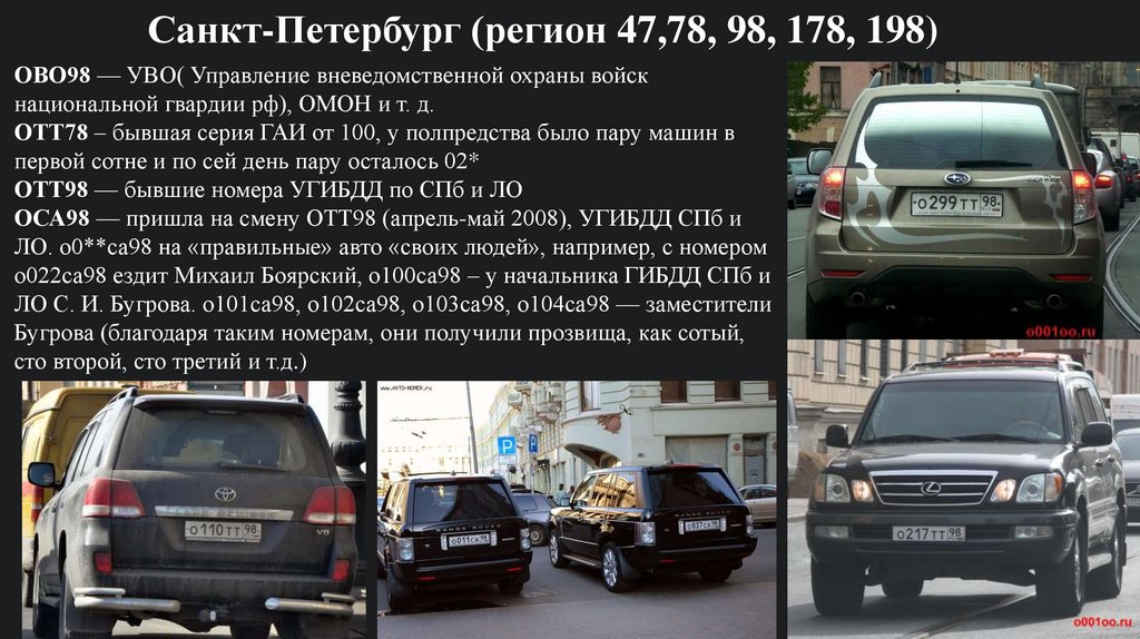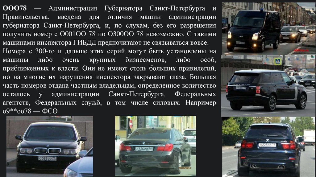 ООО78 — Администрация Губернатора Санкт-Петербурга иПравительства. введена для отличия машин администрации