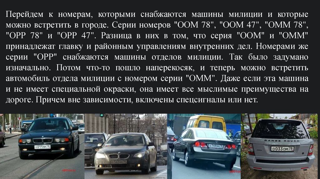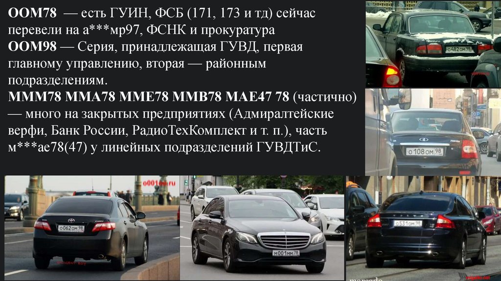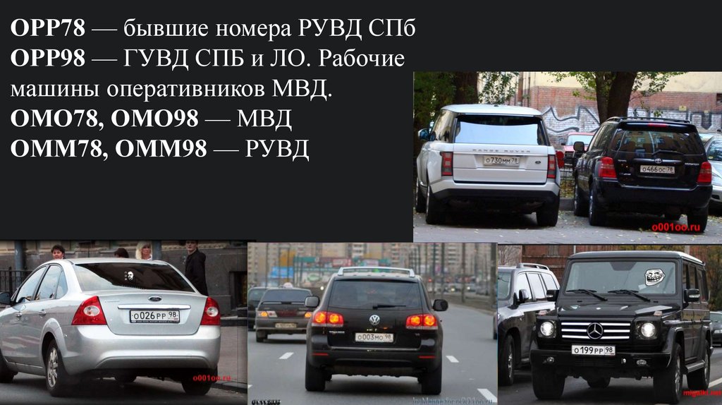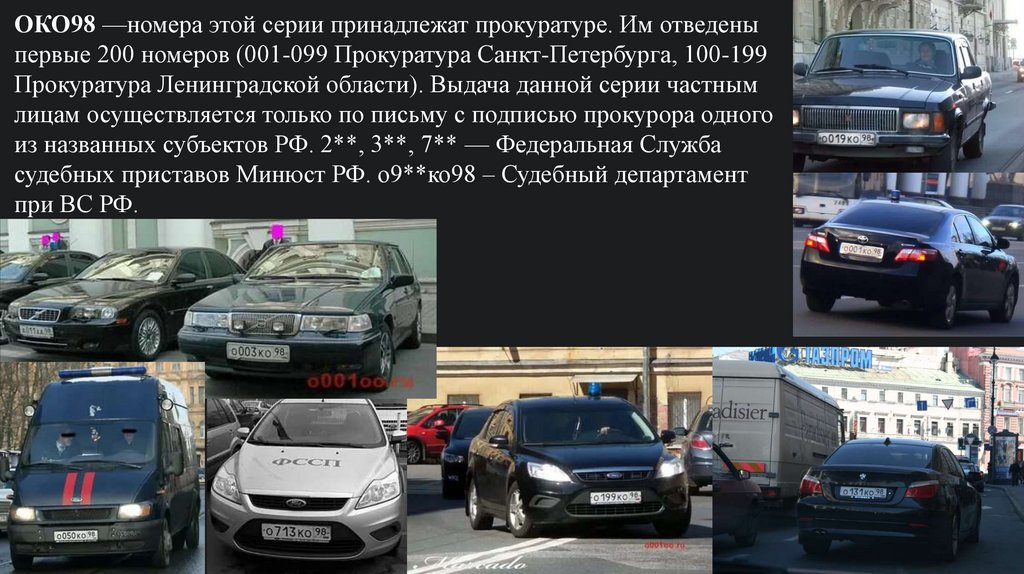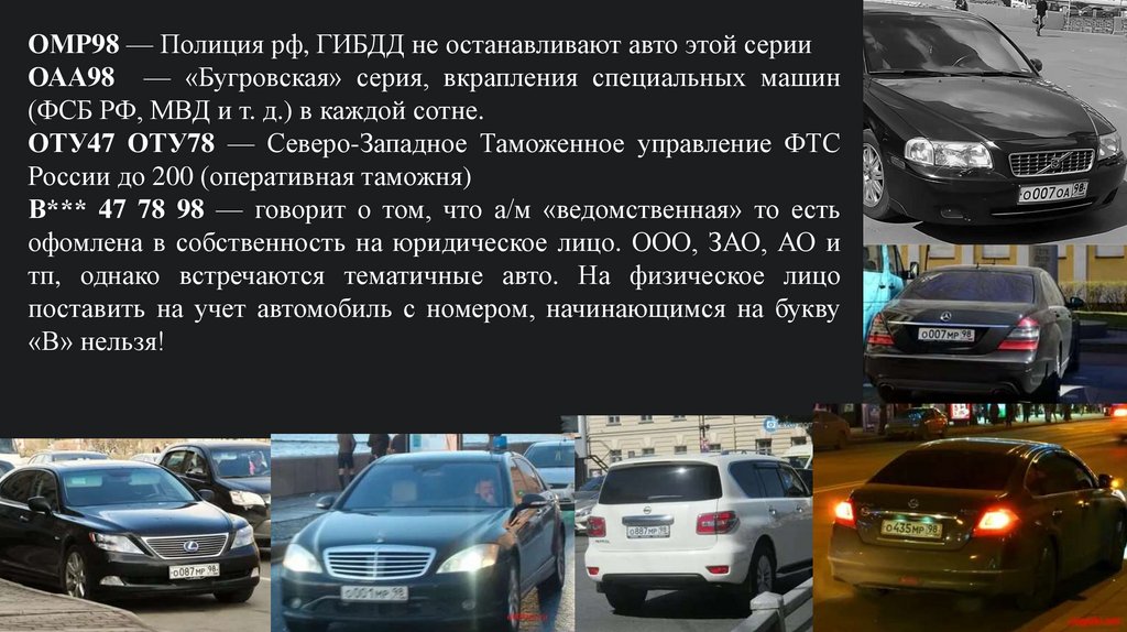 ОМР98 — Полиция рф, ГИБДД не останавливают авто этой серииОАА98 — «Бугровская» серия, вкрапления специальных машин