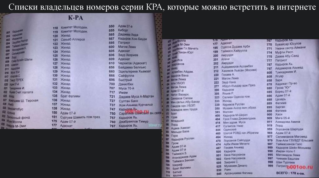 Списки владельцев номеров серии КРА, которые можно встретить в интернете44.