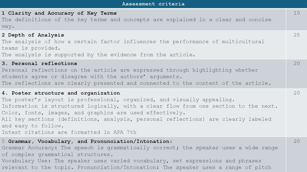 Assessment criteria1 Clarity and Accuracy of Key Terms