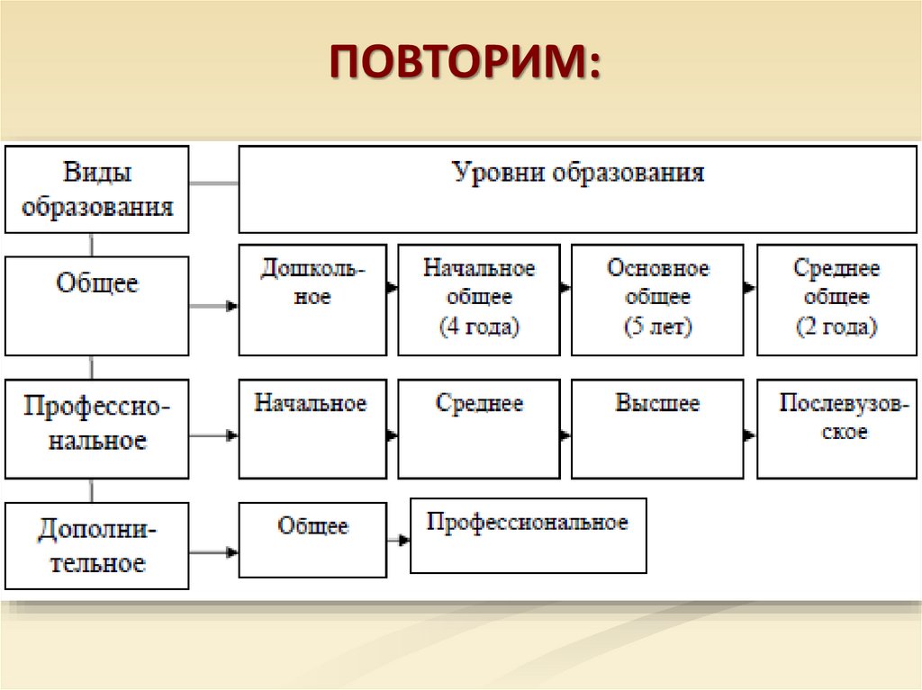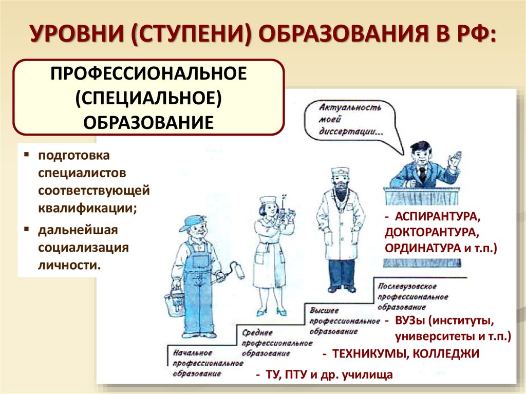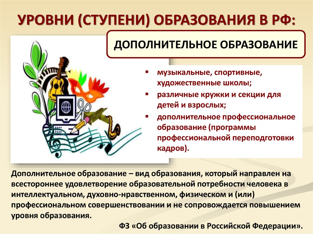 УРОВНИ (СТУПЕНИ) ОБРАЗОВАНИЯ В РФ:
