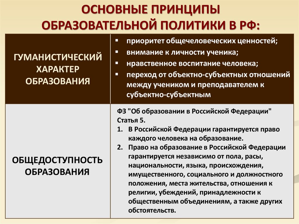 ОСНОВНЫЕ ПРИНЦИПЫ ОБРАЗОВАТЕЛЬНОЙ