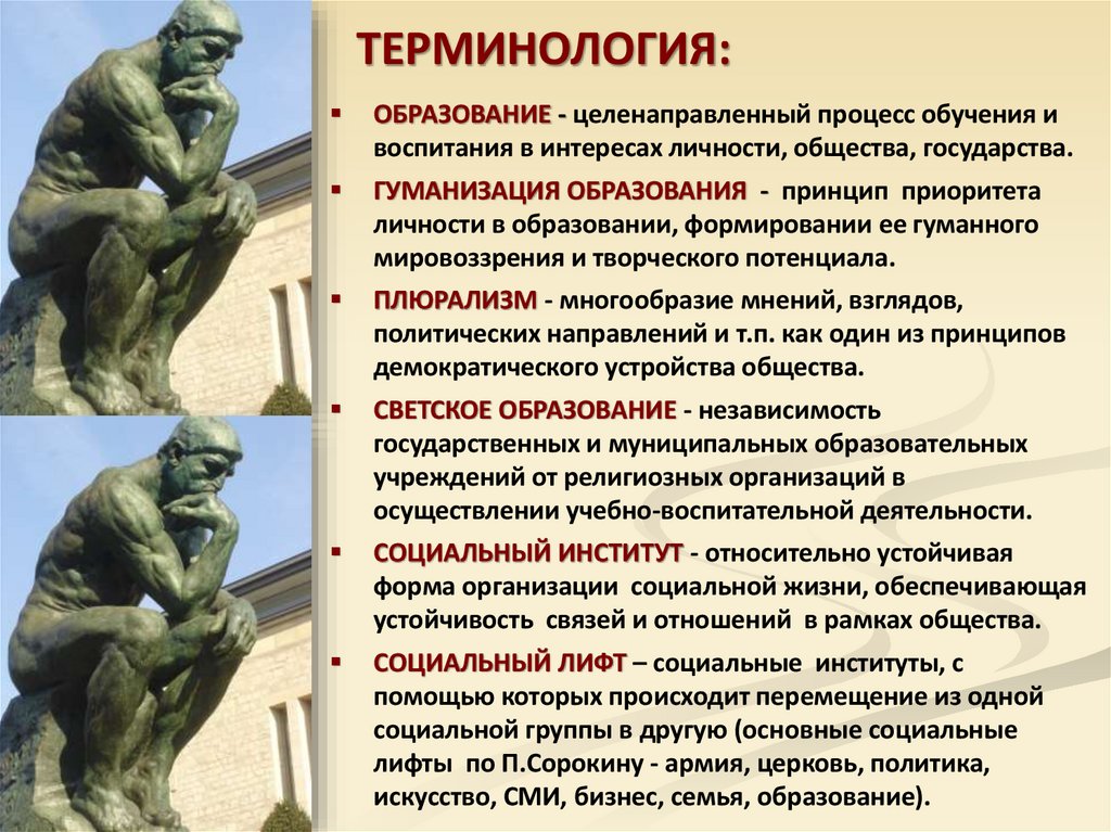 ТЕРМИНОЛОГИЯ:ОБРАЗОВАНИЕ - целенаправленный процесс обучения и