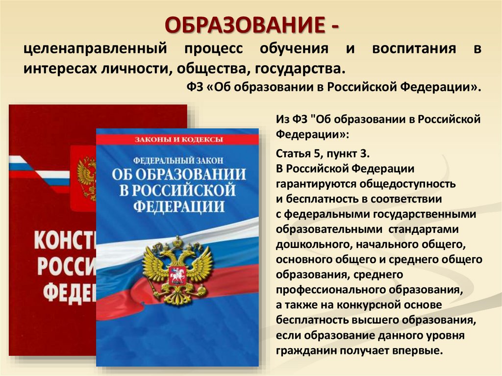 ОБРАЗОВАНИЕ целенаправленный процесс обучения и воспитанияинтересах личности, общества, государства.