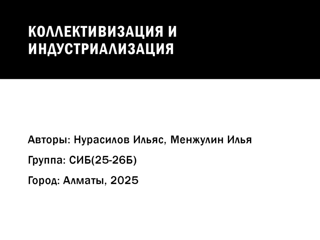 КОЛЛЕКТИВИЗАЦИЯ ИИНДУСТРИАЛИЗАЦИЯ