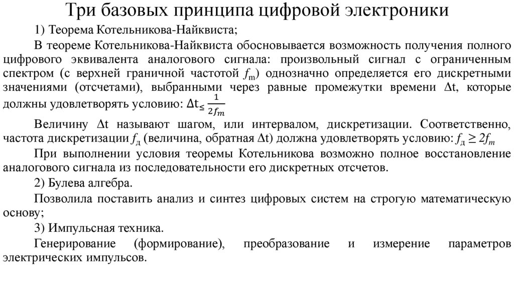 1) Теорема Котельникова-Найквиста;В теореме Котельникова-Найквиста обосновывается возможность получения полного
