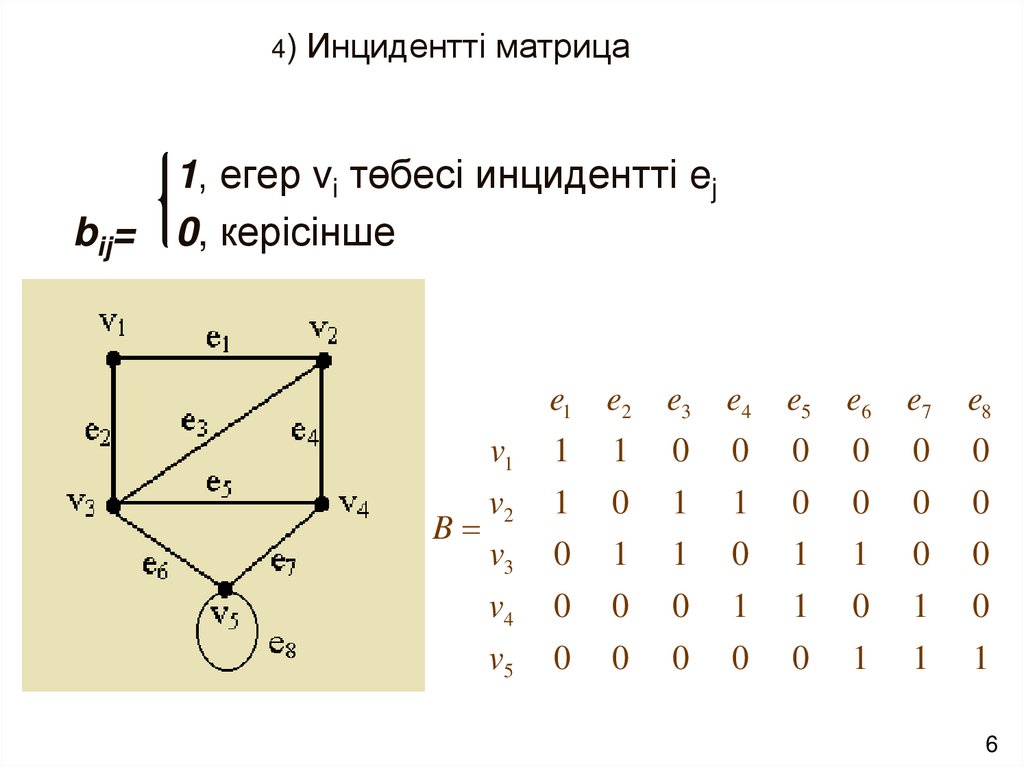 2) Орграф үшін-1, егер ej қабырғасы vi төбесіне кірсе;