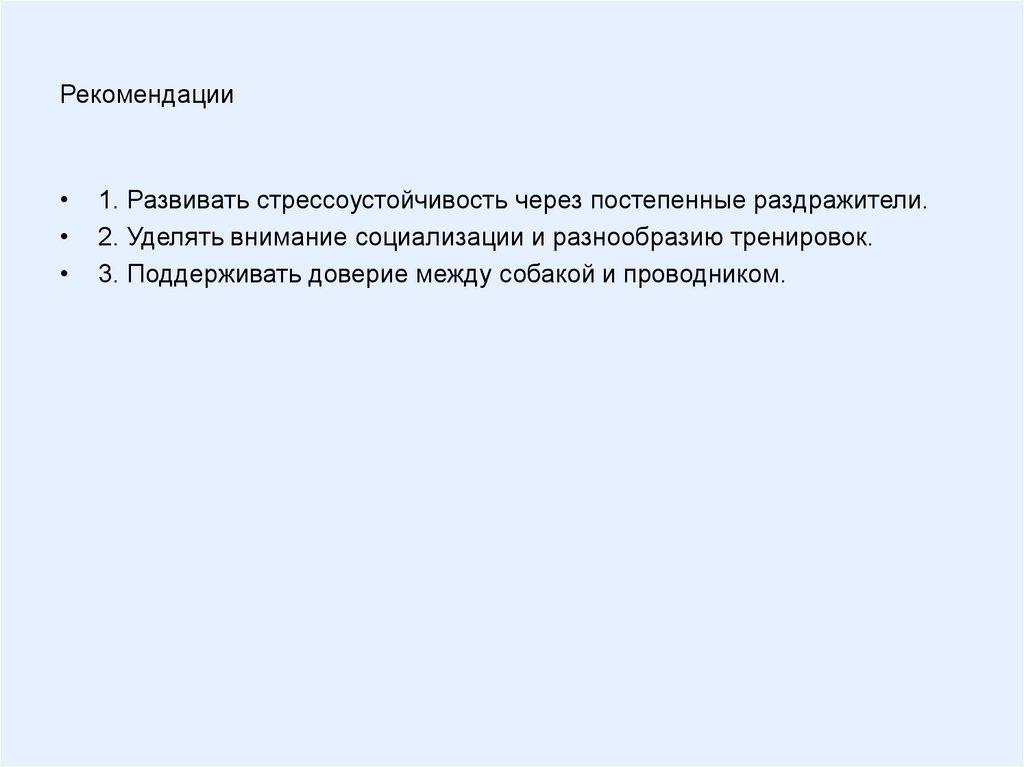 Рекомендации1. Развивать стрессоустойчивость через постепенные раздражители.