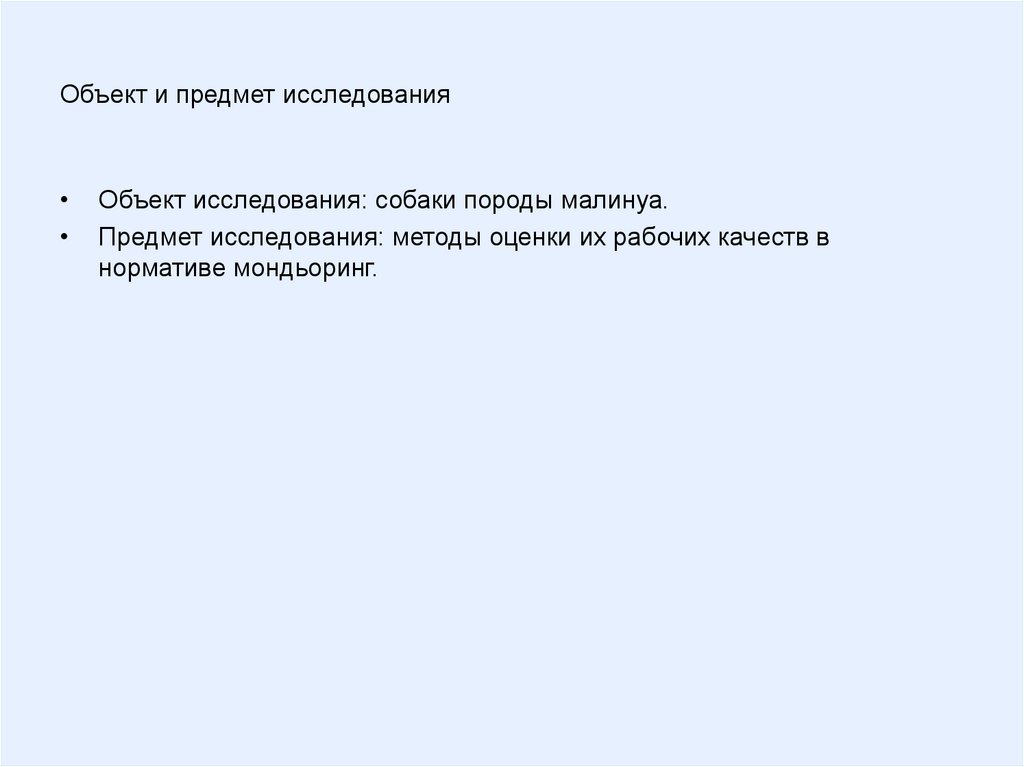 Объект и предмет исследованияОбъект исследования: собаки породы малинуа.