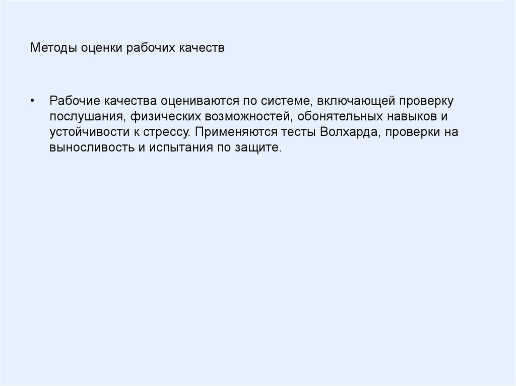 Методы оценки рабочих качествРабочие качества оцениваются по системе, включающей проверку